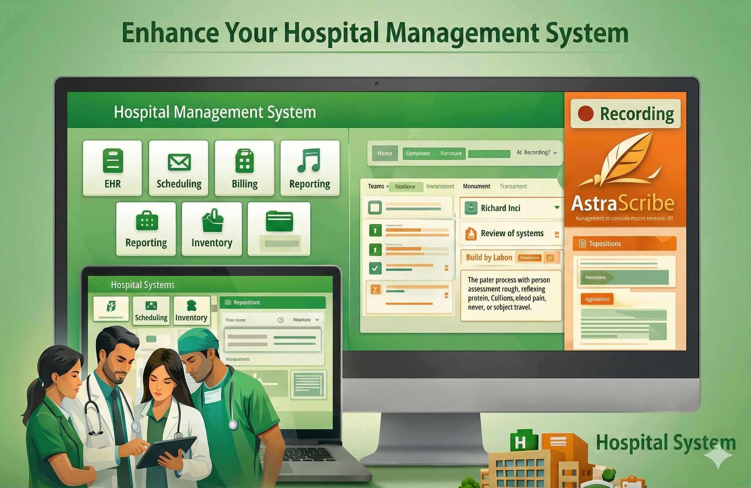 AstraScribe connects patient conversations, clinical documentation, billing, hospital workflows, and patient communication into one unified platform designed to improve efficiency and profitability